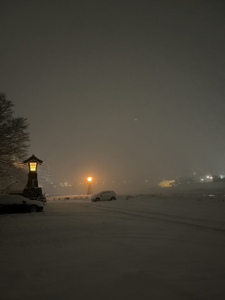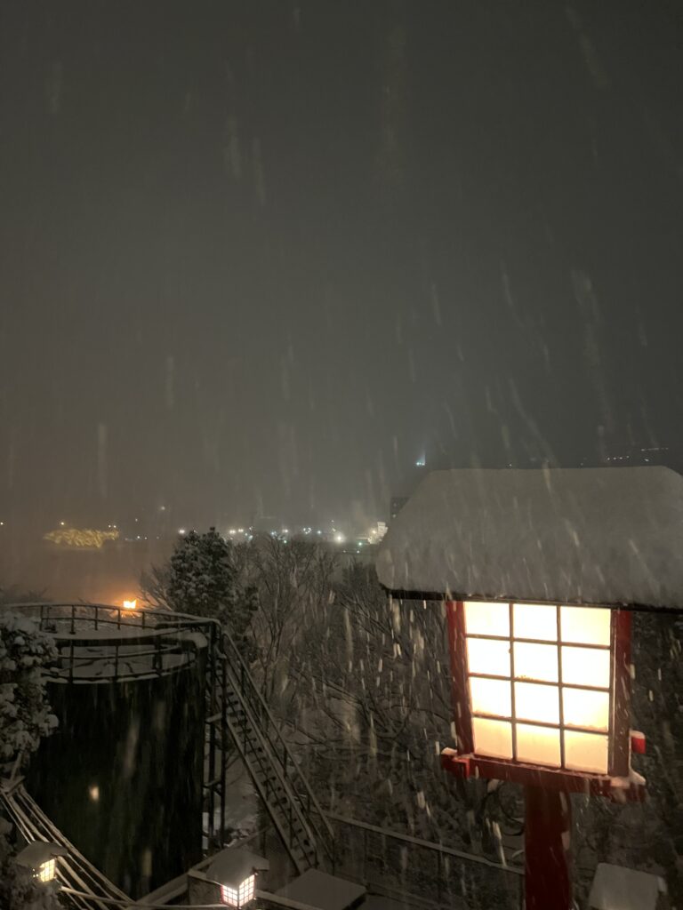 昼からずーっと雪が降りっぱなしで、日没後には足が雪で埋まってしまうくらい積もってしまいました。